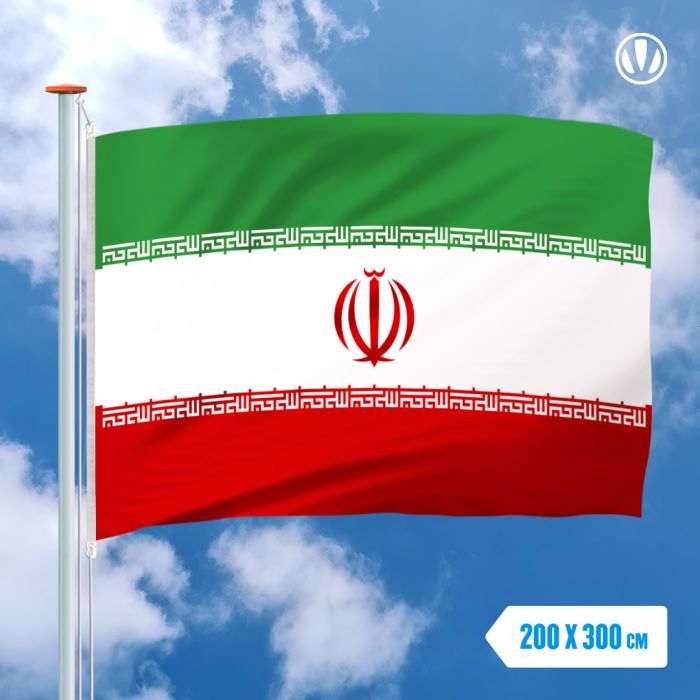 Doordat wij de vlag maken met de beste kwaliteit vlaggenstof zal deze grote vlag van Iran goed in de wind wapperen. De afmetingen van 2 bij 3 meter geven een mooi effect bij wind in een lange vlaggenmast. Heb je een kortere vlaggenmast dan 7 meter dan adviseren wij de vlag 150x225cm.